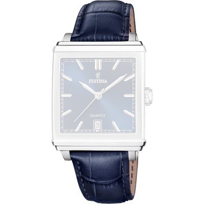 Esta bracelete de relógio Festina é feita de couro e está fixada ao relógio através de pinos de pressão. A bracelete tem uma largura de 21 mm e fecha através de fecho. A bracelete tem uma montagem a direito, o que significa que esta bracelete é adequada para todos os relógios Festina com montagem da bracelete a direito.