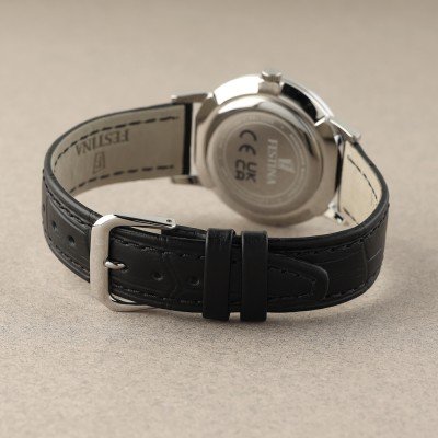 Este relógio Festina tem uma caixa de Inox com um diâmetro de 36 mm e está equipado com uma bracelete de couro. A caixa possui um movimento Miyota e o relógio tem um vidro Mineral.