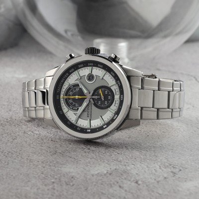 Este relógio Festina tem uma caixa de Inox com um diâmetro de 44 mm e está equipado com uma bracelete de Inox. A caixa possui um movimento Miyota e o relógio tem um vidro Mineral.