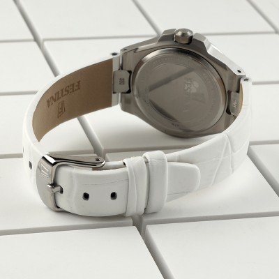 Este relógio Festina tem uma caixa de Inox com um diâmetro de 33 mm e está equipado com uma bracelete de couro. A caixa possui um movimento Miyota e o relógio tem um vidro Mineral.
