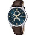 Este relógio Festina tem uma caixa de Inox com um diâmetro de 43 mm e está equipado com uma bracelete de couro. A caixa possui um movimento Miyota e o relógio tem um vidro Mineral.
