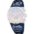 Esta bracelete de relógio Festina é feita de aço inoxidável e está fixada ao relógio através de pinos em aço. A bracelete tem uma largura de 28 mm e fecha através de fivela dobrável com botões de pressão. A bracelete não tem uma montagem a direito, o que significa que esta bracelete só é adequada para os relógios listados abaixo.