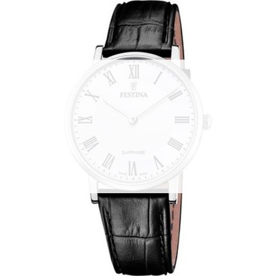 Esta bracelete de relógio Festina é feita de couro e está fixada ao relógio através de pinos de pressão. A bracelete tem uma largura de 20 mm e fecha através de fecho. A bracelete tem uma montagem a direito, o que significa que esta bracelete é adequada para todos os relógios Festina com montagem da bracelete a direito.