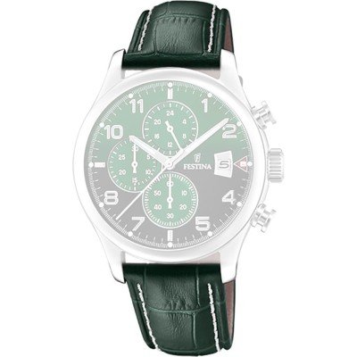 Esta bracelete de relógio Festina é feita de couro e está fixada ao relógio através de pinos de pressão. A bracelete tem uma largura de 21 mm e fecha através de fecho. A bracelete tem uma montagem a direito, o que significa que esta bracelete é adequada para todos os relógios Festina com montagem da bracelete a direito.
