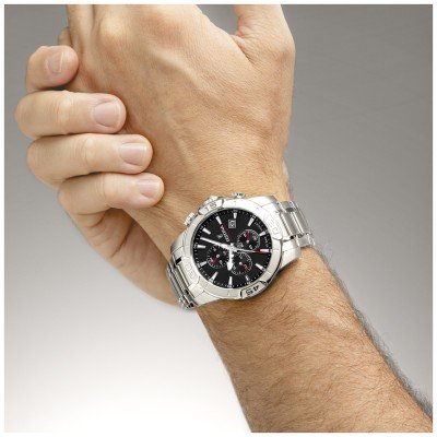 Este relógio Festina tem uma caixa de Inox com um diâmetro de 45 mm e está equipado com uma bracelete de Inox. A caixa possui um movimento Miyota e o relógio tem um vidro Mineral.