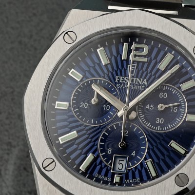 Este relógio Festina tem uma caixa de Inox com um diâmetro de 42 mm e está equipado com uma bracelete de Inox. A caixa possui um movimento Ronda e o relógio tem um vidro Safira.