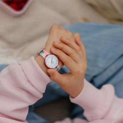 Este relógio Flik Flak tem uma caixa de Plástico de origem biológica com um diâmetro de 30 mm e está equipado com uma bracelete de Tecido. A caixa possui um movimento ETA e o relógio tem um vidro Acrílico.