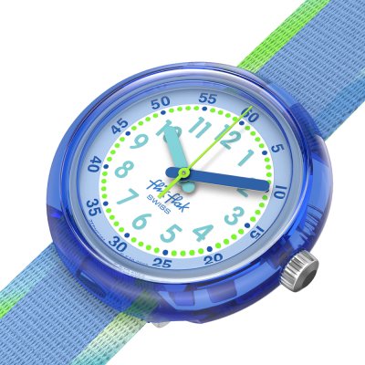 Este relógio Flik Flak tem uma caixa de Plástico de origem biológica com um diâmetro de 30 mm e está equipado com uma bracelete de Tecido. A caixa possui um movimento ETA e o relógio tem um vidro Acrílico.