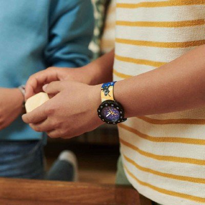 Este relógio Flik Flak tem uma caixa de Resina com um diâmetro de 33.6 mm e está equipado com uma bracelete de Tecido. A caixa possui um movimento ETA e o relógio tem um vidro Acrílico.