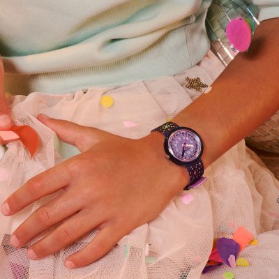 Este relógio Flik Flak tem uma caixa de Plástico de origem biológica com um diâmetro de 30 mm e está equipado com uma bracelete de Tecido. A caixa possui um movimento ETA e o relógio tem um vidro Acrílico.