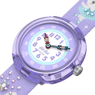 Este relógio Flik Flak tem uma caixa de Plástico de origem biológica com um diâmetro de 30 mm e está equipado com uma bracelete de Tecido. A caixa possui um movimento ETA e o relógio tem um vidro Acrílico.