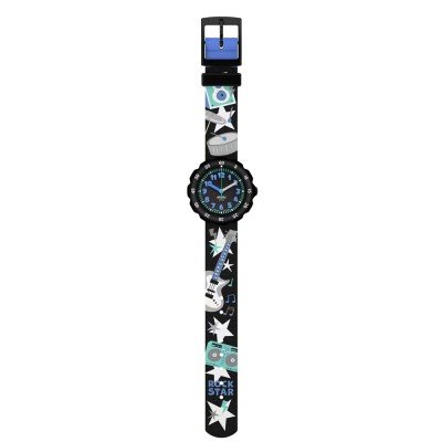 Este relógio Flik Flak tem uma caixa de Plástico de origem biológica com um diâmetro de 33.6 mm e está equipado com uma bracelete de Tecido. A caixa possui um movimento ETA e o relógio tem um vidro Acrílico.