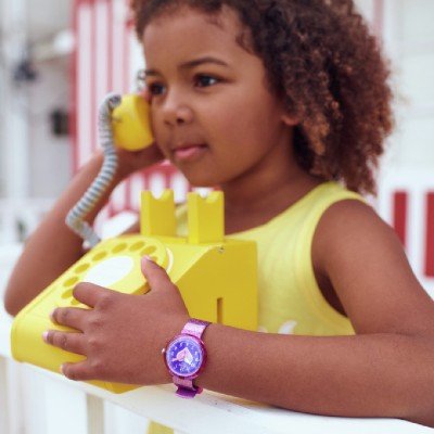 Este relógio Flik Flak tem uma caixa de Resina com um diâmetro de 30 mm e está equipado com uma bracelete de Tecido. A caixa possui um movimento ETA e o relógio tem um vidro Acrílico.