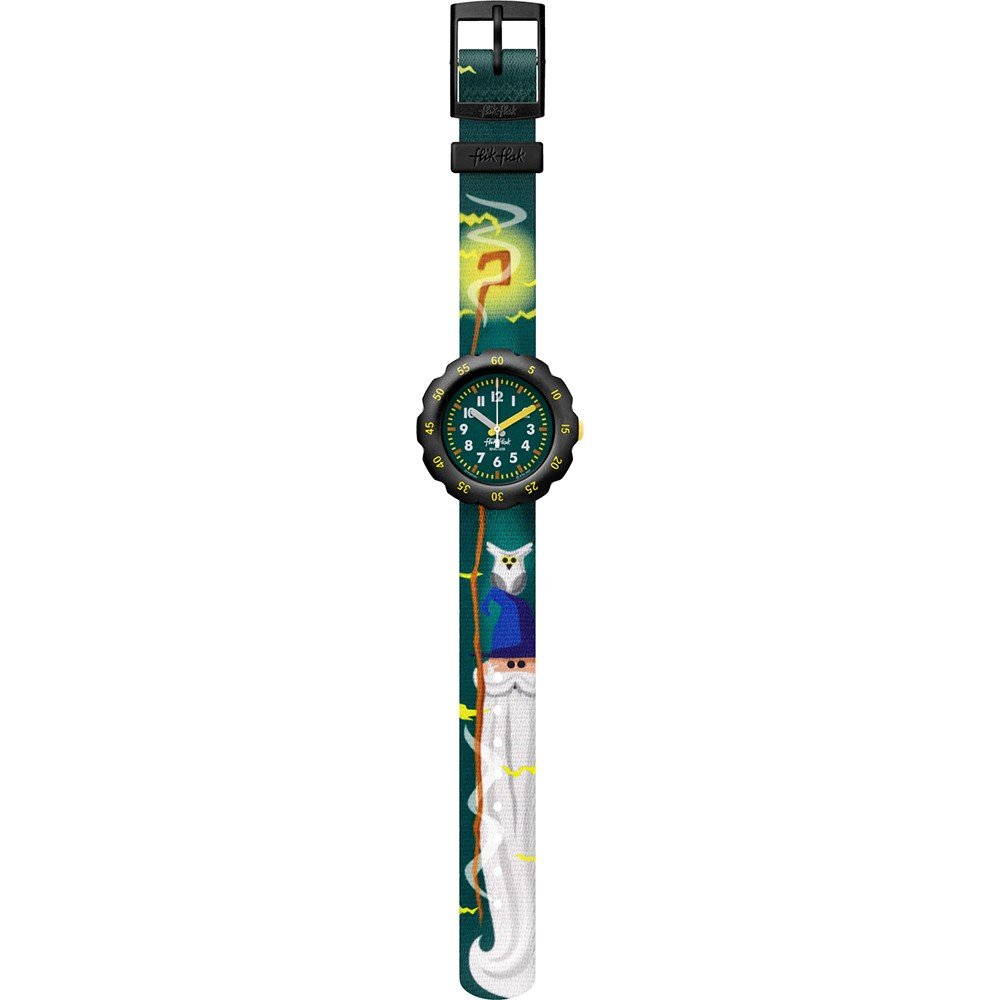 Este relógio Flik Flak tem uma caixa de Resina com um diâmetro de 33.6 mm e está equipado com uma bracelete de Tecido. A caixa possui um movimento ETA e o relógio tem um vidro Acrílico.