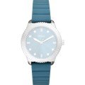 Esta bracelete de relógio Fossil é feita de silicone e está fixada ao relógio através de pinos carregados por mola de liberação rápida. A bracelete tem uma largura de 18 mm e fecha através de fecho. A bracelete tem uma montagem a direito, o que significa que esta bracelete é adequada para todos os relógios Fossil com montagem da bracelete a direito.