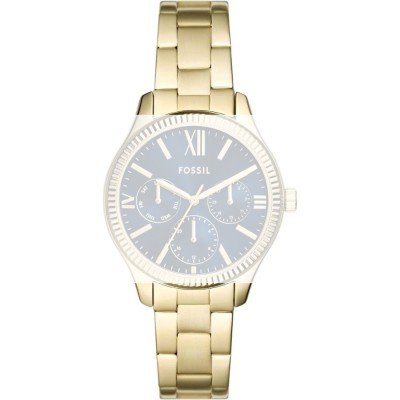 Esta bracelete de relógio Fossil é feita de aço inoxidável e está fixada ao relógio através de pinos de pressão. A bracelete tem uma largura de 16 mm e fecha através de fivela dobrável com botões de pressão. A bracelete não tem uma montagem a direito, o que significa que esta bracelete só é adequada para os relógios listados abaixo.