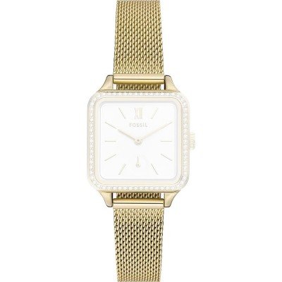 Esta bracelete de relógio Fossil é feita de aço inoxidável e está fixada ao relógio através de pinos de pressão. A bracelete tem uma largura de 14 mm e fecha através de fecho milanese. A bracelete tem uma montagem a direito, o que significa que esta bracelete é adequada para todos os relógios Fossil com montagem da bracelete a direito.