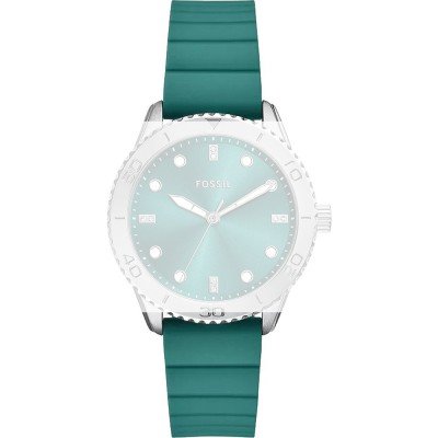Esta bracelete de relógio Fossil é feita de silicone e está fixada ao relógio através de pinos carregados por mola de liberação rápida. A bracelete tem uma largura de 18 mm e fecha através de fecho. A bracelete tem uma montagem a direito, o que significa que esta bracelete é adequada para todos os relógios Fossil com montagem da bracelete a direito.
