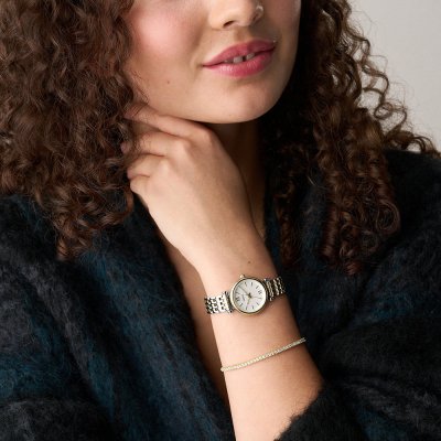 Este relógio Fossil tem uma caixa de Inox com um diâmetro de 28 mm e está equipado com uma bracelete de Inox. A caixa possui um movimento Seiko Instruments Inc. e o relógio tem um vidro Mineral.