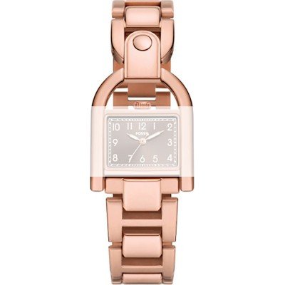 Esta bracelete de relógio Fossil é feita de aço inoxidável e está fixada ao relógio através de pinos de pressão. A bracelete tem uma largura de 20 mm e fecha através de fivela joalheria. A bracelete não tem uma montagem a direito, o que significa que esta bracelete só é adequada para os relógios listados abaixo.