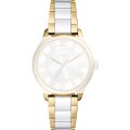 Este relógio Fossil tem uma caixa de Inox com um diâmetro de 38 mm e está equipado com uma bracelete de Aço inoxidável e cerâmica. A caixa possui um movimento Miyota e o relógio tem um vidro Mineral.