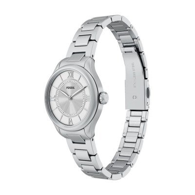Este relógio Fossil tem uma caixa de Inox com um diâmetro de 28 mm e está equipado com uma bracelete de Inox. A caixa possui um movimento Seiko Instruments Inc. e o relógio tem um vidro Mineral.