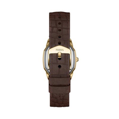 Este relógio Fossil tem uma caixa de Inox com um diâmetro de 27 mm e está equipado com uma bracelete de couro. A caixa possui um movimento Miyota e o relógio tem um vidro Mineral.