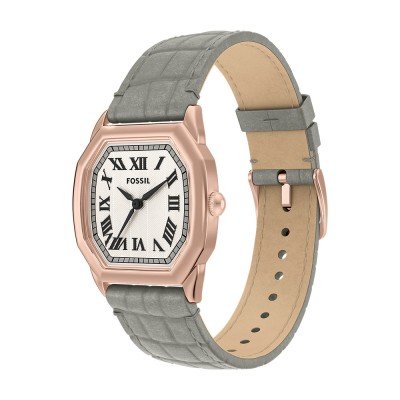 Este relógio Fossil tem uma caixa de Inox com um diâmetro de 27 mm e está equipado com uma bracelete de couro. A caixa possui um movimento Miyota e o relógio tem um vidro Mineral.