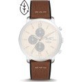 Esta bracelete de relógio Fossil é feita de couro e está fixada ao relógio através de pinos carregados por mola de liberação rápida. A bracelete tem uma largura de 22 mm e fecha através de fecho. A bracelete tem uma montagem a direito, o que significa que esta bracelete é adequada para todos os relógios Fossil com montagem da bracelete a direito.
