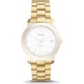 Esta bracelete de relógio Fossil é feita de aço inoxidável e está fixada ao relógio através de pinos carregados por mola de liberação rápida. A bracelete tem uma largura de 20 mm e fecha através de fivela dobrável com botões de pressão. A bracelete não tem uma montagem a direito, o que significa que esta bracelete só é adequada para os relógios listados abaixo.