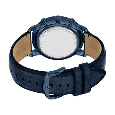 Este relógio Fossil tem uma caixa de Inox com um diâmetro de 44 mm e está equipado com uma bracelete de couro. A caixa possui um movimento Miyota e o relógio tem um vidro Mineral.