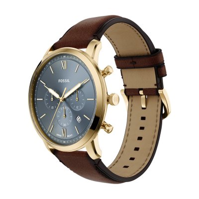 Este relógio Fossil tem uma caixa de Inox com um diâmetro de 44 mm e está equipado com uma bracelete de couro. A caixa possui um movimento Miyota e o relógio tem um vidro Mineral.