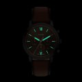 Este relógio Fossil tem uma caixa de Inox com um diâmetro de 44 mm e está equipado com uma bracelete de couro. A caixa possui um movimento Miyota e o relógio tem um vidro Mineral.