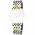 Esta bracelete de relógio Frederique Constant é feita de aço inoxidável e está fixada ao relógio através de pinos de pressão. A bracelete tem uma largura de 14 mm e fecha através de fivela butterfly com botões de pressão. A bracelete não tem uma montagem a direito, o que significa que esta bracelete só é adequada para os relógios listados abaixo.