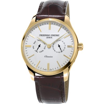 Esta bracelete de relógio Frederique Constant é feita de couro e está fixada ao relógio através de pinos de pressão. A bracelete tem uma largura de 20 mm. A bracelete tem uma montagem a direito, o que significa que esta bracelete é adequada para todos os relógios Frederique Constant com montagem da bracelete a direito.
