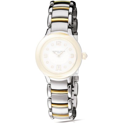 Esta bracelete de relógio Frederique Constant é feita de aço inoxidável e está fixada ao relógio através de pinos carregados por mola de liberação rápida. A bracelete tem uma largura de 16 mm e fecha através de fivela butterfly invisível. A bracelete não tem uma montagem a direito, o que significa que esta bracelete só é adequada para os relógios listados abaixo.