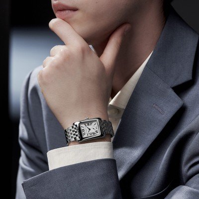 O design do Frederique Constant Classics Carrée foi inspirado no movimento Art Déco das décadas de 1920 e 1930, com as suas linhas rectas e esticadas e formas geométricas elaboradas. Um estilo que - em cem anos - não perdeu o seu atrativo e continua a ser popular entre os entusiastas do design e da relojoaria. Os ponteiros das horas e dos minutos percorrem um "mostrador de sector", também conhecido como "via férrea", tão típico da época. Um ponteiro pequeno de segundos independente está inserido às 6 horas com um ligeiro plano oco. Outro elemento de design "Deco" é a coroa em forma de cebola, um tributo aos relógios de bolso que este tipo de relógio de pulso foi lentamente substituindo como o relógio quotidiano de todos. Por mais clássico que seja o estilo, por baixo encontra-se um moderno movimento suíço FC-235 (baseado no Ronda 1064) para a máxima precisão.