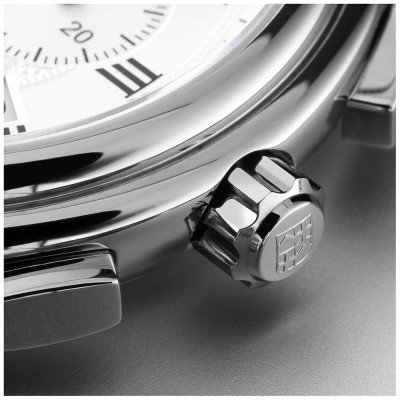 Este relógio Frederique Constant tem uma caixa de Inox com um diâmetro de 40 mm e está equipado com uma bracelete de couro. A caixa possui um movimento Ronda e o relógio tem um vidro Safira.