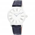 Esta bracelete de relógio Frederique Constant é feita de couro e está fixada ao relógio através de pinos de pressão. A bracelete tem uma largura de 15 mm. A bracelete tem uma montagem a direito, o que significa que esta bracelete é adequada para todos os relógios Frederique Constant com montagem da bracelete a direito.
