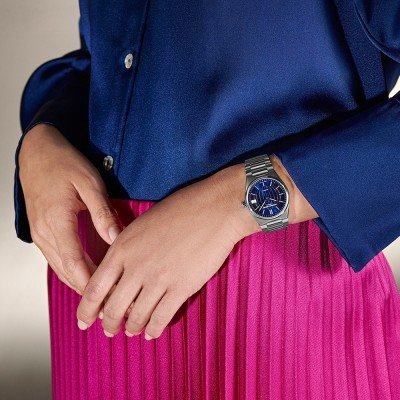 Este relógio Highlife para mulher foi concebido para proporcionar estilo e versatilidade às mulheres modernas. É um relógio moderno de 34 mm com uma bracelete de aço integrada, que pode ser facilmente trocada pela bracelete de borracha adicional fornecida com o conjunto. O mostrador brilhante com efeito raiado apresenta um padrão de globo em relevo, indicadores de horas e ponteiros em forma de lápis e uma janela de data às três horas. O preciso movimento automático FC-303 (baseado no SW200) que alimenta este magnífico relógio tem uma reserva de marcha de 38 horas. O relógio de mulher Highlife está realmente a viver a sua melhor vida, permanecendo elegante, mas um pouco impertinente ao mesmo tempo. O conjunto é um presente perfeito para uma mulher com um olhar exigente e um estilo de vida moderno e ativo.