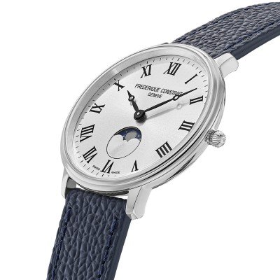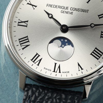 O relógio Frederique Constant Classics Moonphase é um relógio de quartzo preciso que combina o estilo clássico com a funcionalidade quotidiana. A refinada complicação das fases da lua está perfeitamente posicionada às 6 horas no mostrador bem equilibrado e altamente legível com números romanos. A caixa de 39 mm revestida a ouro polido aloja um movimento de quartzo FC-206 com uma duração de pilha não inferior a 60 meses. Um relógio elegante e sofisticado para o homem que aprecia as coisas mais requintadas da vida.