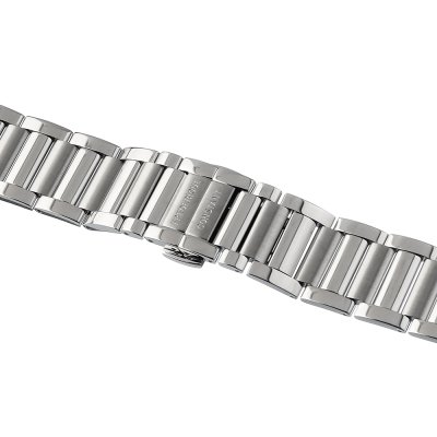 Esta bracelete de relógio Frederique Constant é feita de aço inoxidável e está fixada ao relógio através de pinos de pressão. A bracelete tem uma largura de 20 mm e fecha através de fivela butterfly com botões de pressão. A bracelete não tem uma montagem a direito, o que significa que esta bracelete só é adequada para os relógios listados abaixo.