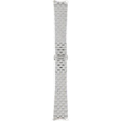 Esta bracelete de relógio Frederique Constant é feita de aço inoxidável e está fixada ao relógio através de pinos de pressão. A bracelete tem uma largura de 22 mm e fecha através de fivela butterfly com botões de pressão. A bracelete não tem uma montagem a direito, o que significa que esta bracelete só é adequada para os relógios listados abaixo.