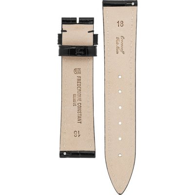 Esta bracelete de relógio Frederique Constant é feita de couro e está fixada ao relógio através de pinos de pressão. A bracelete tem uma largura de 18 mm. A bracelete tem uma montagem a direito, o que significa que esta bracelete é adequada para todos os relógios Frederique Constant com montagem da bracelete a direito.