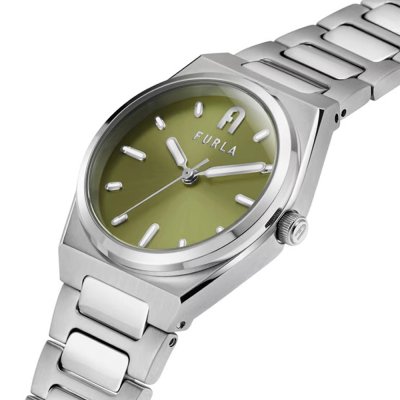 Este relógio Furla tem uma caixa de Inox com um diâmetro de 30 mm e está equipado com uma bracelete de Inox. A caixa possui um movimento Miyota e o relógio tem um vidro Mineral.