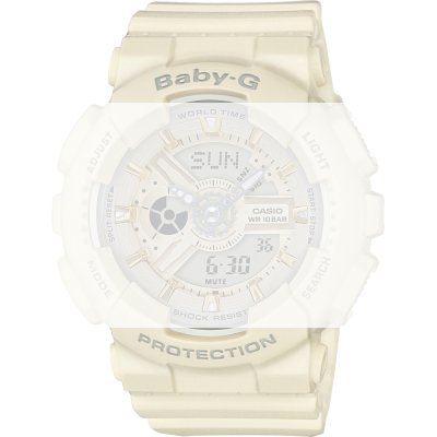 Esta bracelete de relógio G-Shock é feita de resina e está fixada ao relógio através de pinos de pressão. A bracelete tem uma largura de 24.5 mm e fecha através de fecho. A bracelete não tem uma montagem a direito, o que significa que esta bracelete só é adequada para os relógios listados abaixo.