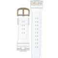 Esta bracelete de relógio G-Shock é feita de resina e está fixada ao relógio através de pinos de pressão. A bracelete tem uma largura de 24.5 mm e fecha através de fecho. A bracelete não tem uma montagem a direito, o que significa que esta bracelete só é adequada para os relógios listados abaixo.