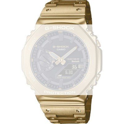 Esta bracelete de relógio G-Shock é feita de aço inoxidável e está fixada ao relógio através de parafuso de sela. A bracelete tem uma largura de 26 mm e fecha através de fivela dobrável com botões de pressão. A bracelete não tem uma montagem a direito, o que significa que esta bracelete só é adequada para os relógios listados abaixo.