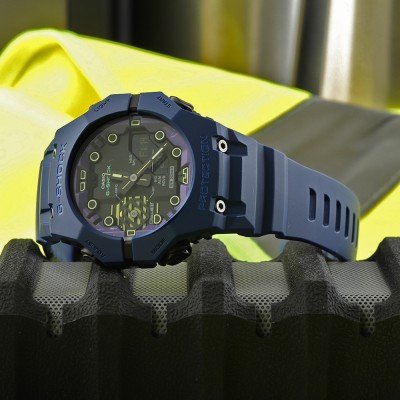 Este relógio G-Shock tem uma caixa de Resina reforçada com fibras com um diâmetro de 46 mm e está equipado com uma bracelete de Resina. A caixa possui um movimento Casio e o relógio tem um vidro Mineral.