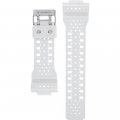 Esta bracelete de relógio G-Shock é feita de resina e está fixada ao relógio através de pinos de pressão. A bracelete tem uma largura de 29 mm e fecha através de fecho. A bracelete não tem uma montagem a direito, o que significa que esta bracelete só é adequada para os relógios listados abaixo.